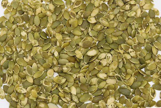 南瓜籽仁為葫蘆科植物南瓜的種子,呈扁橢圓形,一端略尖,外殼黃白色,干燥成熟的種籽。南瓜籽仁也可以炒熟后食用,也適用于作為烘焙輔料和炒熱菜配料等。
